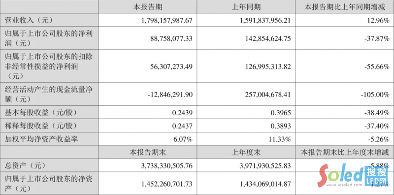 艾比森(300389)8月6日披露2024年半年度報(bào)告。2024年上半年,公司實(shí)現(xiàn)營(yíng)業(yè)收入17.98億元,同比增長(zhǎng)12.96%;歸母凈利潤(rùn)8875.81萬(wàn)元,同比下降37.87%;扣非凈利潤(rùn)5630.73萬(wàn)元,同比下降55.66%;經(jīng)營(yíng)活動(dòng)產(chǎn)生的現(xiàn)金流量?jī)纛~為-1284.63萬(wàn)元,上年同期為2.57億元;報(bào)告期內(nèi),艾比森基本每股收益為0.2439元,加權(quán)平均凈資產(chǎn)收益率為6.07%。