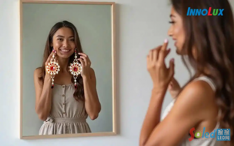 群創(chuàng)此次帶來了全球首臺拼接式 Micro LED 鏡面顯示器與另一款高 PPI Micro LED 鏡面顯示器,兩者皆具有 115% NTSC 高色域、86% 高反射率,同時在低功耗下仍提供高亮度。