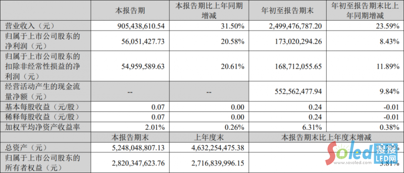 核心提示:報告顯示,2025年第三季度,聚燦光電實(shí)現(xiàn)營業(yè)收入9.05億元,同比增長31.50%;歸屬于上市公司股東的凈利潤5605萬元,同比增長20.58%;扣除非經(jīng)常性損益后的凈利潤為5496萬元,同比增長20.61%。公司盈利能力持續(xù)增強(qiáng),整體經(jīng)營表現(xiàn)優(yōu)于行業(yè)平均水平。