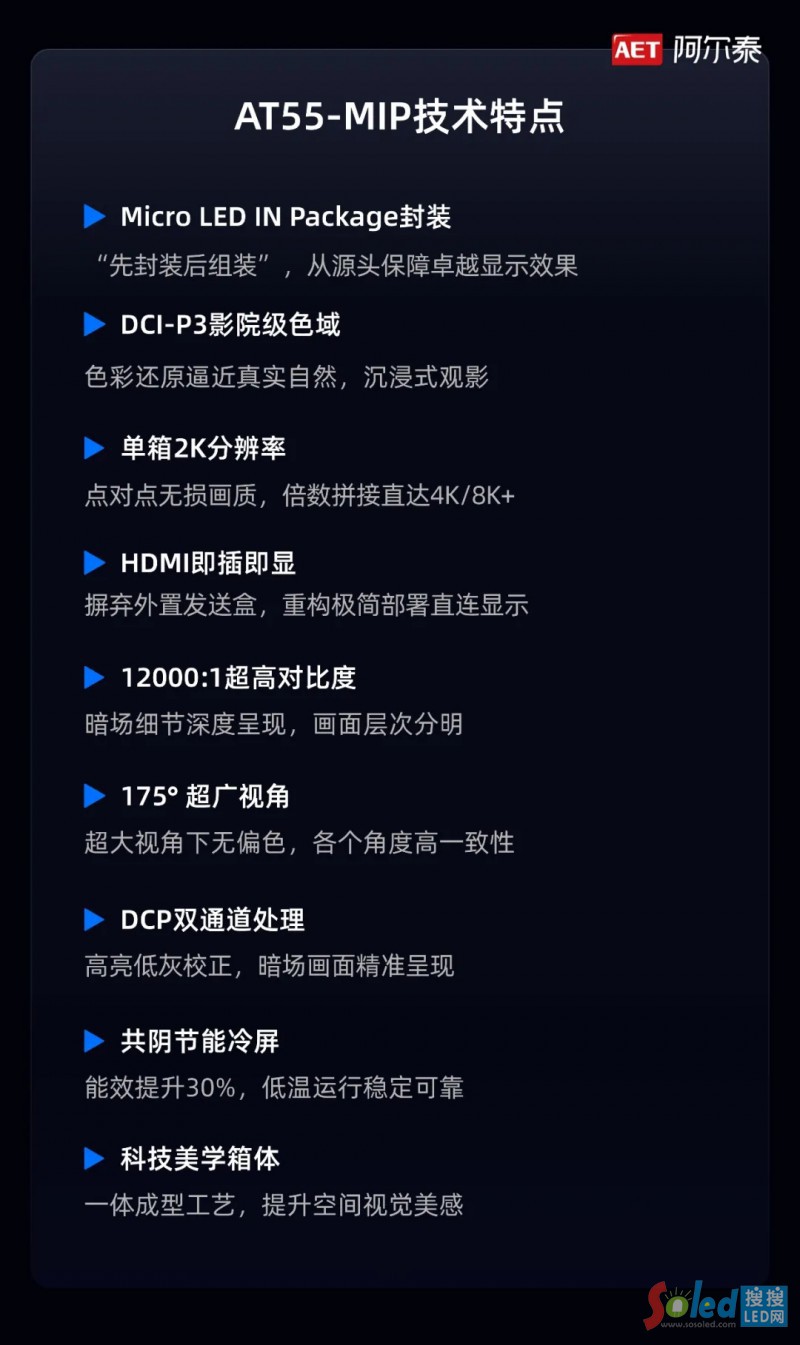 AET阿爾泰正式發(fā)布AT55-MIP領創(chuàng)顯示平臺,以"技術更優(yōu)、畫質更優(yōu)、應用更優(yōu)"實現(xiàn)全維迭代,傾力打造Micro LED超高清顯示的更優(yōu)解決方案。