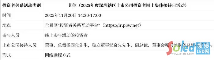 11月20日,深圳市奧拓電子股份有限公司(下稱“奧拓電子”)參與2025年度深圳轄區(qū)上市公司投資者網(wǎng)上集體接待日活動(dòng),通過全景網(wǎng)“投資者關(guān)系互動(dòng)平臺”與線上投資者進(jìn)行交流。公司董事、總裁楊四化,獨(dú)立董事鄒奇先,副總裁、董事會(huì)秘書兼財(cái)務(wù)總監(jiān)楊揚(yáng)出席活動(dòng),就公司戰(zhàn)略規(guī)劃、業(yè)務(wù)進(jìn)展、市場布局等核心問題回應(yīng)投資者關(guān)切。