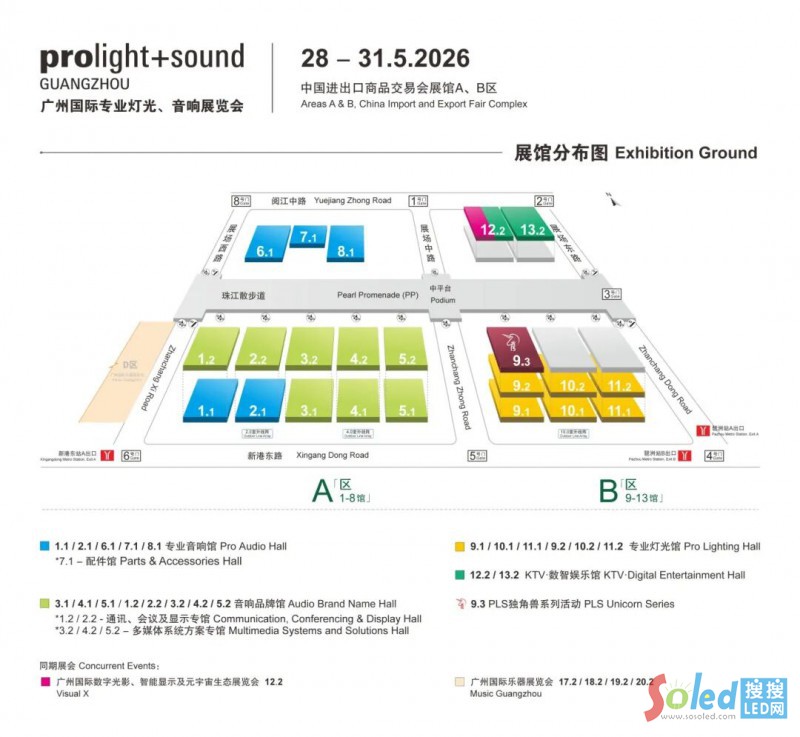 在展廳布局上,本屆展會進行了精心規(guī)劃與調(diào)整。A區(qū)作為專業(yè)音響與系統(tǒng)集成大本營,一樓8大展廳聯(lián)動,涵蓋音響品牌館、專業(yè)音響?zhàn)^與音響配件專區(qū);二樓5大音響品牌館則延伸出更豐富的應(yīng)用場景,包括通訊會議系統(tǒng)、多媒體整體解決方案等多個專業(yè)板塊。B區(qū)實現(xiàn)燈光館全面升級,首次啟用B區(qū)一樓9.1/10.1/11.1號館作為專業(yè)燈光館,形成一二樓6大燈光展廳的聯(lián)動展示,打造出更具規(guī)模效應(yīng)的燈光集群。同時,全新升級的KTV·數(shù)智娛樂館落戶12.2與13.2號館,在傳統(tǒng)KTV板塊基礎(chǔ)上引入沉浸式娛樂體驗,與專業(yè)燈光館等形成聯(lián)動,探索“文旅 + 科技 + 娛樂”融合發(fā)展新賽道。