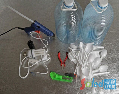 6.塑料勺“秒變”羽毛燈