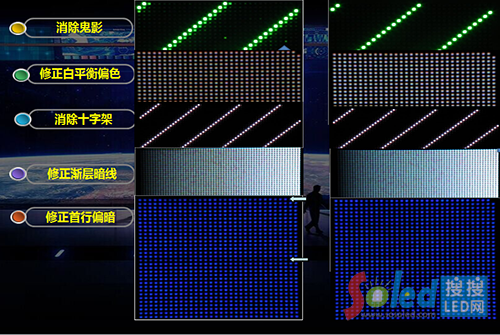 自動(dòng)校正,校正系數(shù)存儲(chǔ)于模組之上,顯示屏啟動(dòng)時(shí),接收卡自動(dòng)讀取模組內(nèi)的校正系數(shù)并啟用。