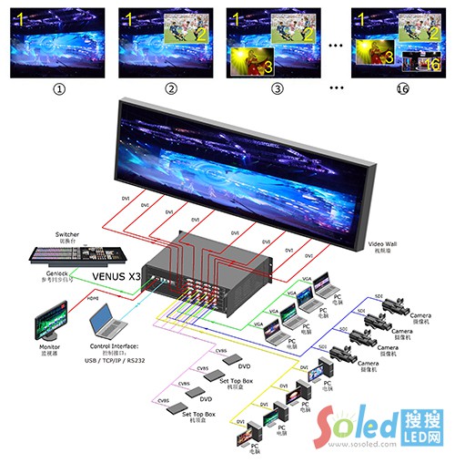 視頻處理器采用視誠(chéng)科技維納斯X3產(chǎn)品,這是一款高端的集多功能于一體的視頻處理器,可以滿足金錢豹系列的高清顯示需求,并且支持任意信號(hào)格式輸入輸出;可以實(shí)現(xiàn)任何信號(hào)的無(wú)縫切換,充分滿足客戶的多層次需求。