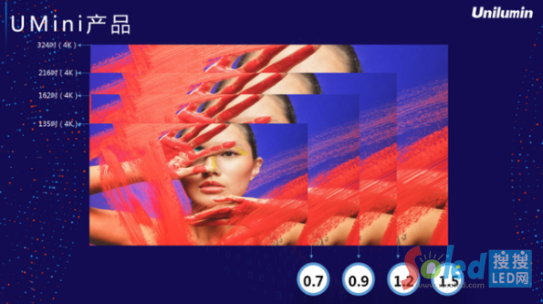 本次發(fā)布會推出的UMini顯示產(chǎn)品涵蓋P0.7、0.9、1.2、1.5四種點間距。