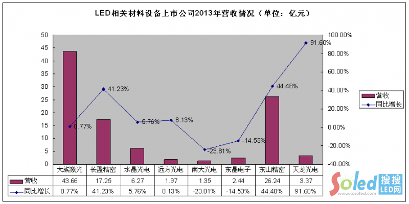 LED相關(guān)材料設(shè)備上市公司2013年營收狀況