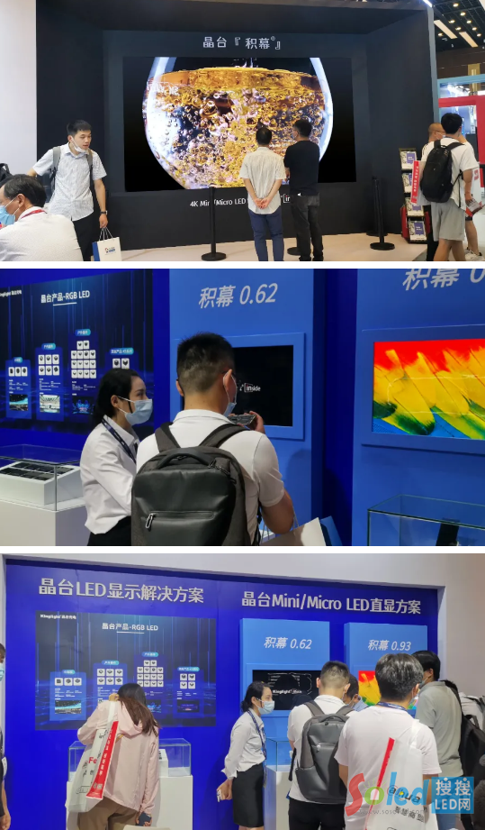展會(huì)現(xiàn)場(chǎng),晶臺(tái)PB2-01展臺(tái)吸引了眾多參觀者駐足。工作人員為觀眾介紹晶臺(tái)*新Mini/Micro LED“積幕”產(chǎn)品,讓不少參觀者對(duì)晶臺(tái)技術(shù)點(diǎn)贊。