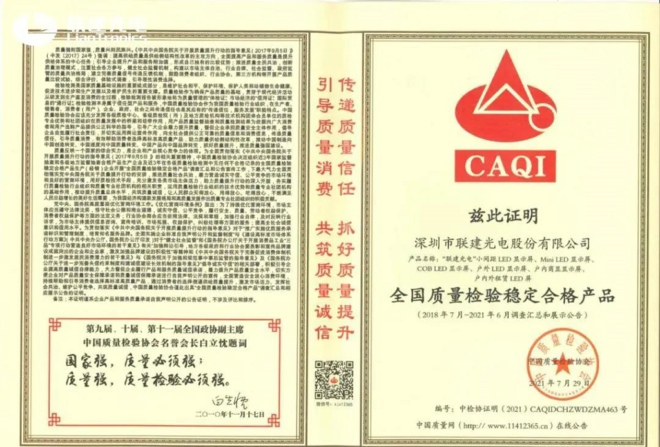 【平、純、穩(wěn)、新、精、全】是聯建光電基于三大LED品質核心標準和最新市場需求,找到的6大品質發(fā)力點,是聯建光電在LED大屏市場中穩(wěn)占一席之地的口碑基礎。未來,聯建光電還將繼續(xù)挖掘更多保障/提高大屏品質的新技術,始終做“令人信賴的大屏幕供應商”。
