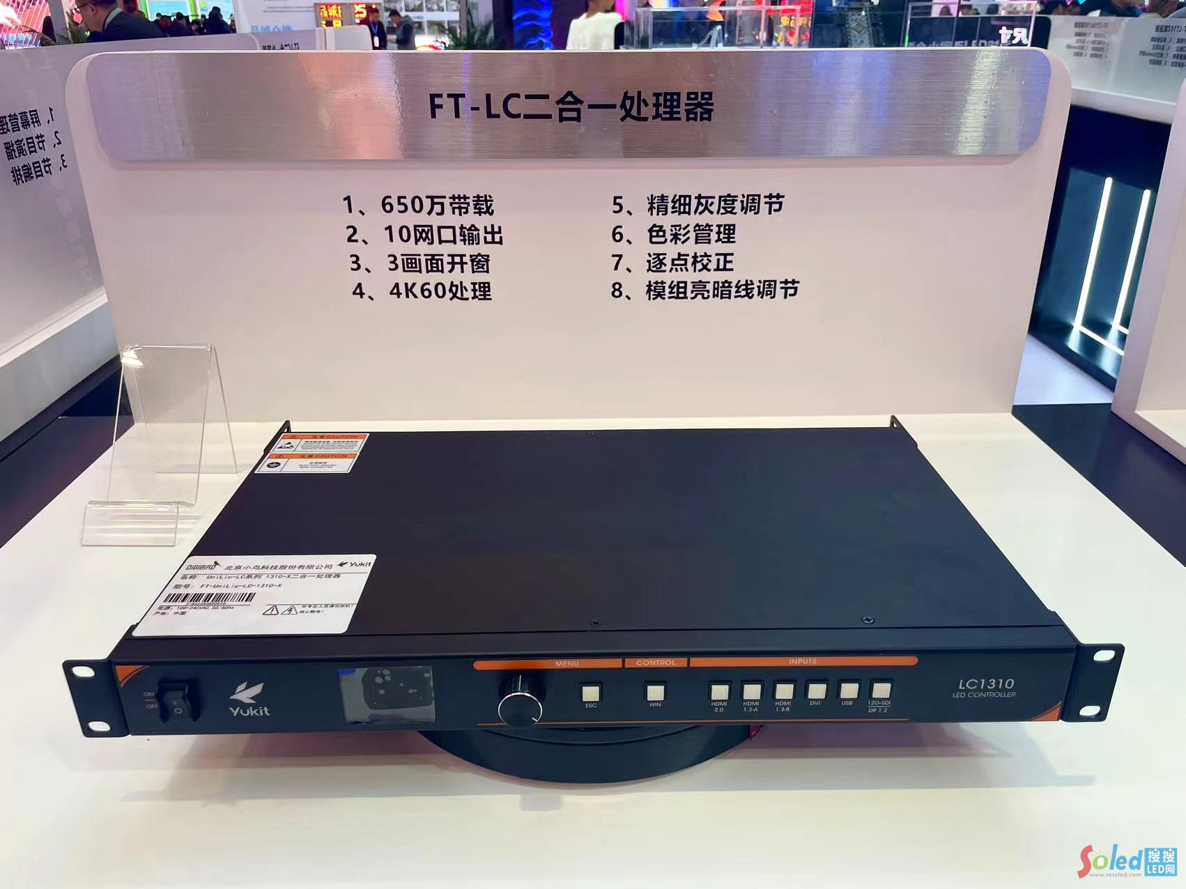 在展位的中央部分――靜態(tài)展示區(qū),小鳥科技羽控品牌呈現(xiàn)了多款旗下智能顯控系統(tǒng)產(chǎn)品,其中,UniLic LED智能顯控系統(tǒng)中的LR 系列E516 型 LED 接收卡及LC1310二合一處理器頗受關(guān)注。