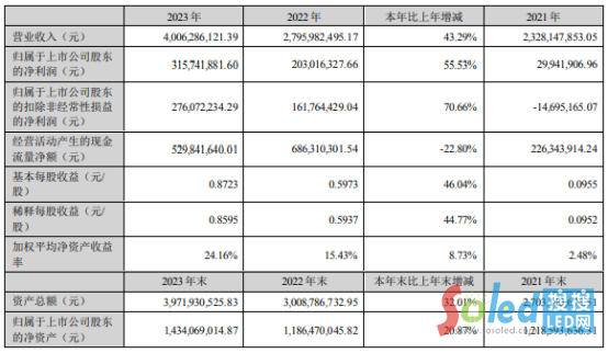 4月15日,艾比森(300389)近日發(fā)布2023年年度報告,報告期內(nèi)公司實現(xiàn)營業(yè)收入4,006,286,121.39元,同比增長43.29%;歸屬于上市公司股東的凈利潤315,741,881.60元,同比增長55.53%。