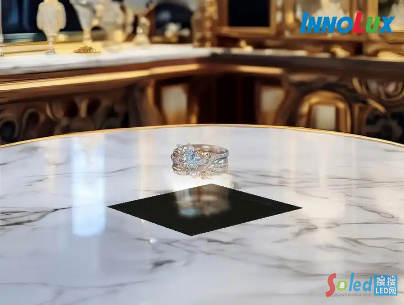 而在更廣義的 Micro LED 顯示領域,群創(chuàng)還帶來了“Micro LED 浮空珠寶盒”。這一創(chuàng)意產(chǎn)品浮空影像亮度可達 1500 尼特,支持非接觸式手勢感應技術,亦可即時識別拿取、旋轉(zhuǎn)虛擬對象等手勢動作。