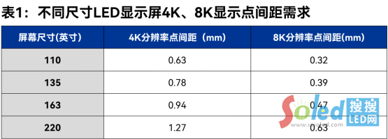 100英寸以上的大尺寸戶內(nèi)顯示中點間距直接決定畫面清晰度,163英寸屏幕實現(xiàn)4K(3840×2160)分辨率需P0.94mm間距, 8K(7680×4320)分辨率則需P0.47mm。目前主流廠商通過倒裝芯片與微米級COB技術,已將點間距降到0.9mm以下,其中雷曼光電等企業(yè)實現(xiàn)P0.47mm量產(chǎn),推動4K、8K超高清顯示在指揮監(jiān)控、商用會議、家庭影院等全場景落地。