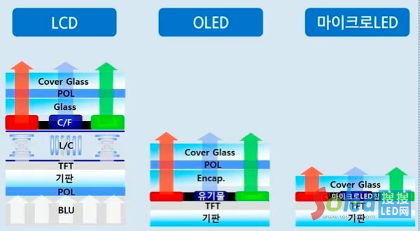 LCD、OLED 和 microLED 器件結(jié)構(gòu)對比