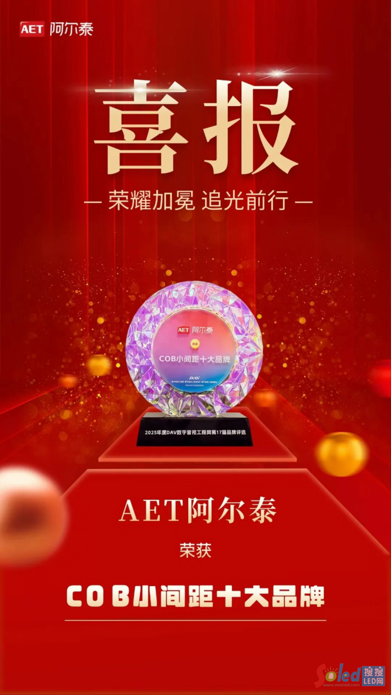 喜報(bào)!AET阿爾泰榮獲“COB小間距十大品牌”,以生態(tài)實(shí)力引領(lǐng)視界未來