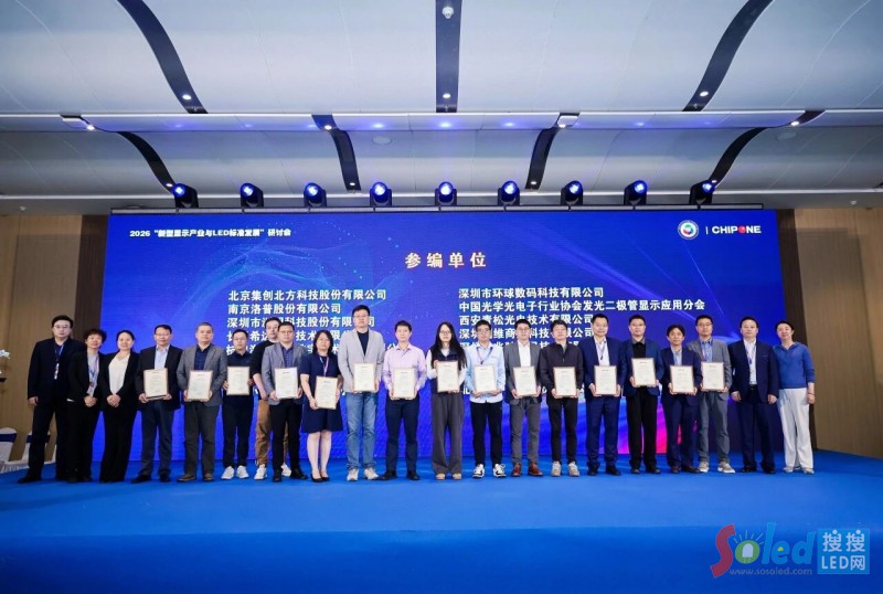 北京集創(chuàng)北方科技股份有限公司、南京洛普股份有限公司、深圳市洲明科技股份有限公司、長春希達電子技術(shù)有限公司、杭州?低晹(shù)字技術(shù)股份有限公司、浙江大華技術(shù)股份有限公司、浙江宇視科技有限公司、北京小鳥科技股份有限公司、深圳市環(huán)球數(shù)碼科技有限公司、中國光學光電子行業(yè)協(xié)會發(fā)光二極管顯示應用分會、西安青松光電技術(shù)有限公司、深圳創(chuàng)維商用科技有限公司、深圳市兆馳晶顯技術(shù)有限公司、京東方晶芯科技有限公司、上海寰視網(wǎng)絡科技有限公司、北京淳中科技股份有限公司等各參編單位代表一同上臺,共同見證這一行業(yè)重要時刻,沈小兵、ink-id="link-1773049326171-0.4821617763845192">劉秀娟、李燕蘭和蔡廣超為參編單位頒發(fā)證書。