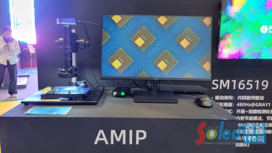 尤為值得關(guān)注的是,本次展會(huì)明微電子首次推出的AMIP封裝新品,成為全場亮點(diǎn)之一。該產(chǎn)品采用燈驅(qū)合一設(shè)計(jì),將發(fā)光芯片與驅(qū)動(dòng)IC集成封裝,驅(qū)動(dòng)IC尺寸僅100*100微米,封裝最小可做到200×200微米,專為P0.7以下Micro LED家庭影院場景量身定制,也是公司今年重點(diǎn)主推的核心產(chǎn)品,有望引領(lǐng)Micro LED領(lǐng)域的封裝技術(shù)革新。