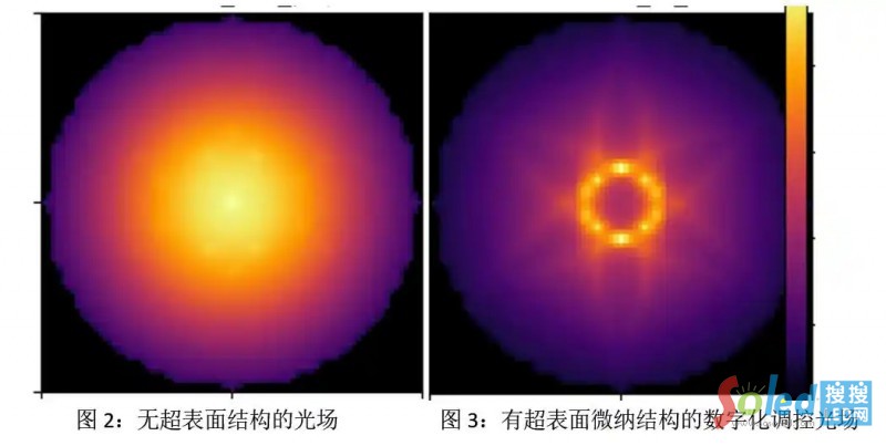 在完成電學與結構集成的同時,鴻石智能在光學層面引入超表面(metasurface)技術,對傳統(tǒng)光學路徑進行重構。該技術通過對光場進行的“數字化編程”實現光的方向性的深度調制,極大提高了外量子效率(EQE),進而提升整體出光效率。其核心價值體現在: