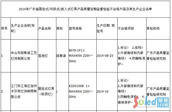 粵31批次燈具抽查不合格 中山企業(yè)頻“中槍”