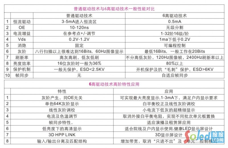 圖為普通驅(qū)動技術(shù)與六高驅(qū)動技術(shù)特點對比